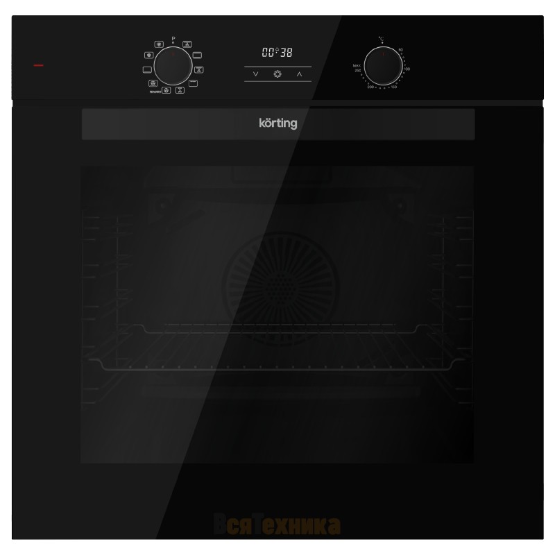 Korting OKB 5111 CFGN духовой шкаф относится к встраиваемой электрической технике полноразмерного формата шириной 60 см. Модель выполнена в рамках коллекции Spectrum и оформлена в чёрном цвете, который повторяется в регуляторах, ручке двери и стеклянной панели управления. Внутренний объём камеры составляет 73 литра, что формирует привычное пространство для повседневного приготовления. Управление сочетает утапливаемые переключатели и сенсорные элементы, а рабочие параметры отображаются на белом светодиодном дисплее. Для контроля времени используется сенсорный таймер, дополняющий систему управления.