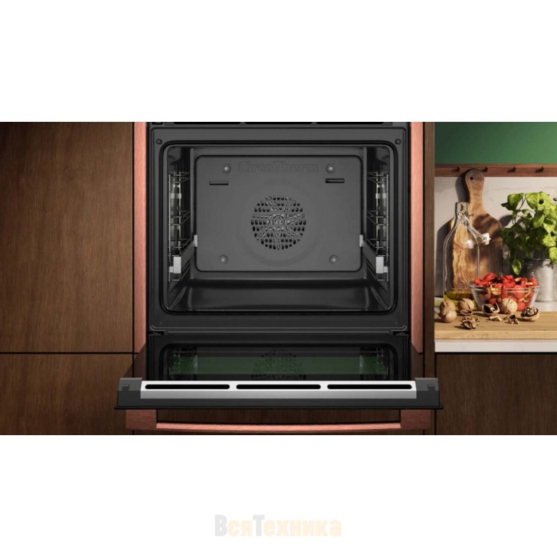 Особенно стоит отметить технологию CircoTherm, которая обеспечивает равномерное распределение тепла внутри камеры, что позволяет готовить несколько блюд одновременно без запахов и вкусовых пересечений. Кроме того, духовой шкаф Neff B29CR3AY0 оснащен функцией Slide&Hide, которая позволяет удобно загружать и выгружать блюда без необходимости приседать и наклоняться.