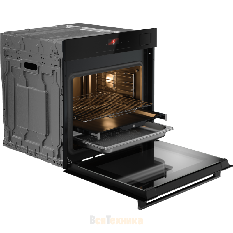 Доставать тяжелые и горячие блюда из духовки теперь легко и безопасно. Полностью выдвижные телескопические направляющие плавно выезжают из камеры, позволяя удобно и безопасно ставить и извлекать даже самые тяжелые и горячие блюда. Больше не нужно тянуться вглубь горячей духовки! Такие направляющие также снижают риск пролить или уронить блюдо.