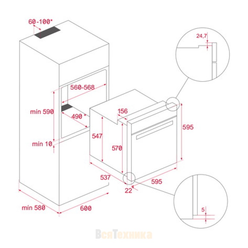 - Увеличенный зазор между камерой и мебельным корпусом для лучшей термоизоляции
