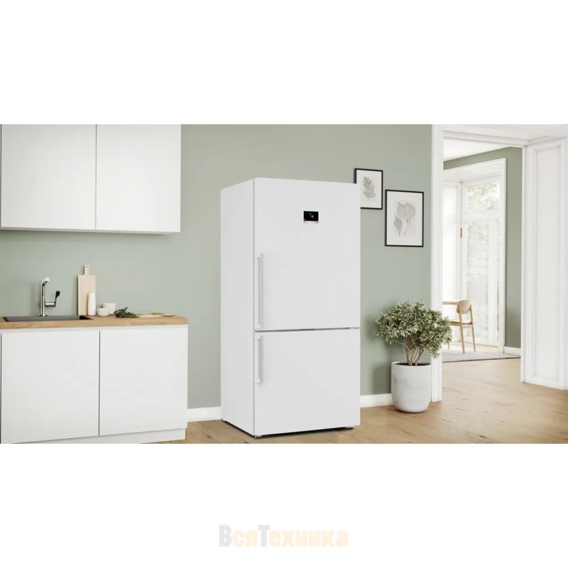 Двухкамерный холодильник Bosch KGP86FWC0N выполнен в строгом белом цвете и демонстрирует продуманную эргономику в сочетании с лаконичным внешним видом.