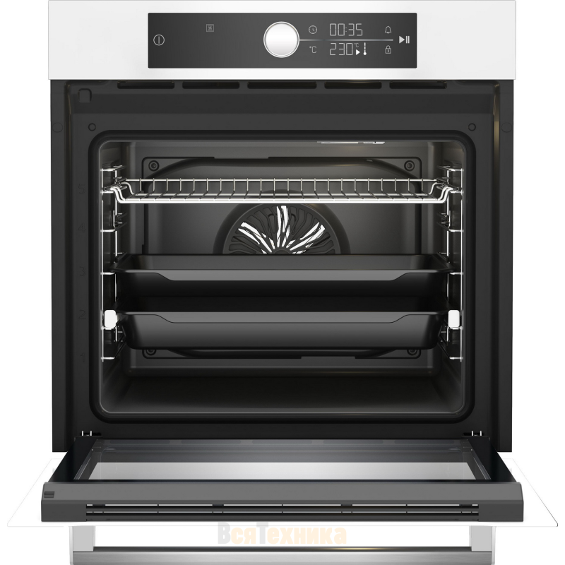 Эта электрическая духовка Beko BBIM17400WE сочетает вместительность, современный дизайн и широкий функционал, что делает её отличным выбором для кухни любого стиля. Модель выполнена в белом цвете с белым стеклом и серебристой фурнитурой, благодаря чему выглядит элегантно и легко сочетается с другой бытовой техникой. Объем духовки составляет 72 литра, что позволяет готовить большие порции блюд, а система управления объединяет механические регуляторы и сенсорный контроль Touch&Knob Beyond-Better с удобным LED-дисплеем.