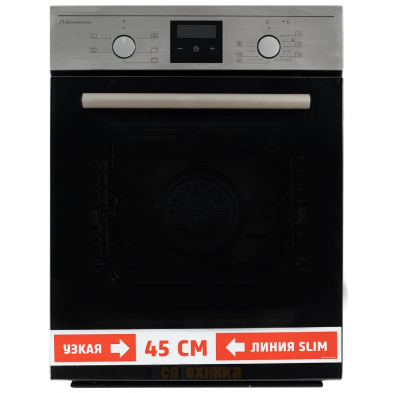 Schaub Lorenz SLB EE4630 — компактная независимая духовка шириной всего 45 см для небольшой кухни, которая может встраиваться в тумбу или колонну на удобной высоте. Общий объем 45 литров и высота 60 см позволит готовить целиком гуся или индейку, выпекать торты и пиццу. Для этого предусмотрено восемь режимов работы, в том числе комбинированных. Данная модель Schaub Lorenz позволяет готовить разнообразные блюда с помощью верхнего и нижнего нагрева, а также сочетания этим режимов с конвекцией. Вы можете легко ухаживать за камерой благодаря эмалевому покрытию и паровой очистке.