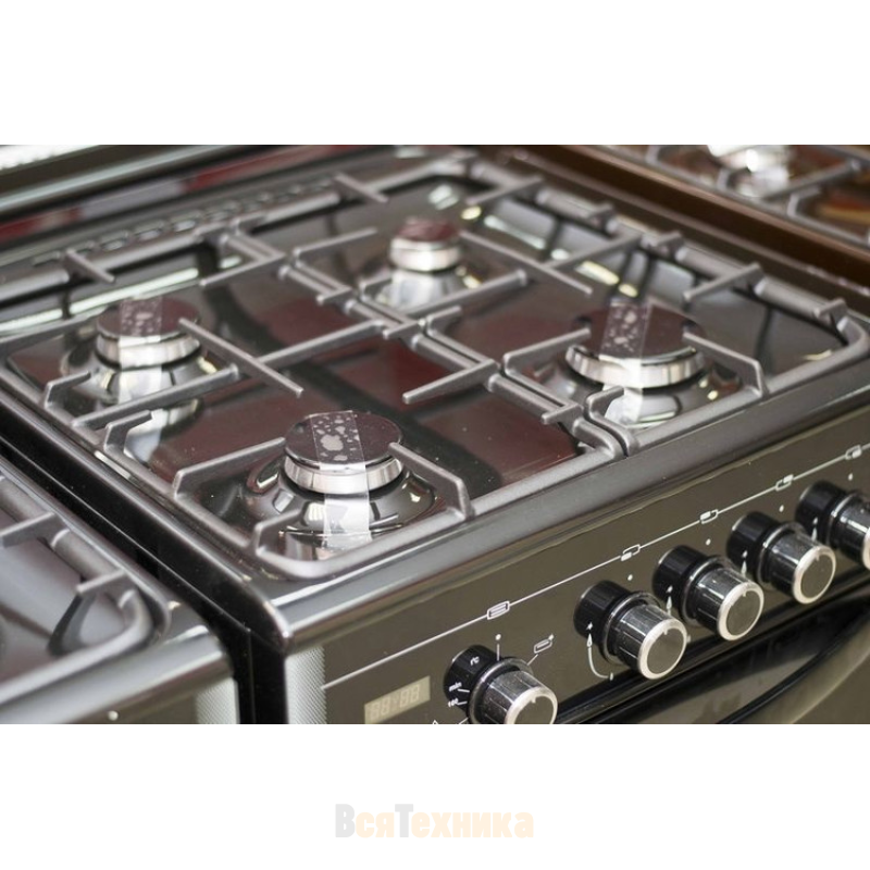 Духовой шкаф также работает на газе и оборудован системой газ-контроля, повышающей уровень безопасности. Внутреннее покрытие камеры выполнено из эмали лёгкой очистки SMART CERAMIC, благодаря чему уход за духовкой не требует лишних усилий. Объём духового шкафа составляет 52 литра, что удобно для приготовления повседневных и праздничных блюд. Предусмотрены режимы нижнего нагрева и гриля, расширяющие возможности готовки. Контроль температуры осуществляется с помощью термостата, а внутреннее освещение позволяет следить за процессом без открытия дверцы.