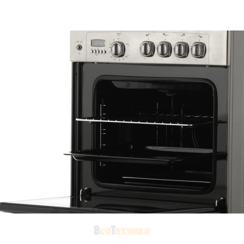 Газовая духовка объёмом 52 литра оснащена газовым грилем и поддерживает два основных режима работы, позволяя запекать и обжаривать блюда с равномерным прогревом. В комплект входит вертел с электроприводом и шашлычница, что делает устройство более универсальным для приготовления мяса и птицы. Подсветка с двумя лампами улучшает обзор внутреннего пространства, а эмалированное покрытие облегчает уход.