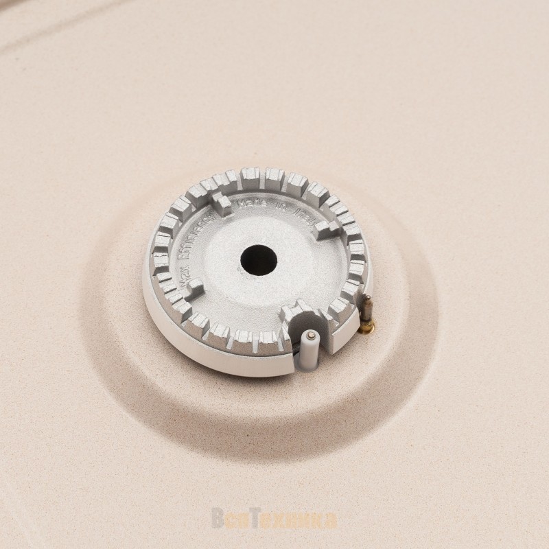 Газовая варочная панель DeLonghi, OWF 46 PRO RUS, 60 см с четырьмя конфорками имеет одну конфорку типа WOK с двойным рядом пламени, мощность которой составляет 3500 ватт, и две обычные конфорки по 1750 ватт каждая. Кроме того, есть одна экономичная горелка мощностью 1000 ватт. Панель оснащена автоматическим розжигом и функцией защиты от утечки газа, что обеспечивает безопасность при использовании.