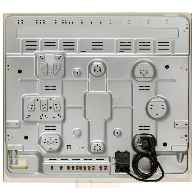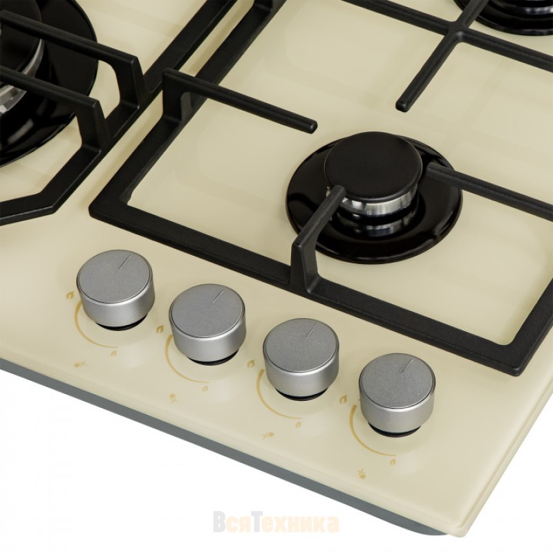 Прочные чугунные решетки не скользят и плотно прилегают к поверхности, стильные ручки управления чёрного цвета не нагреваются во время работы варочной поверхности.