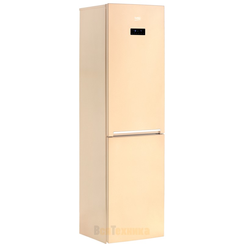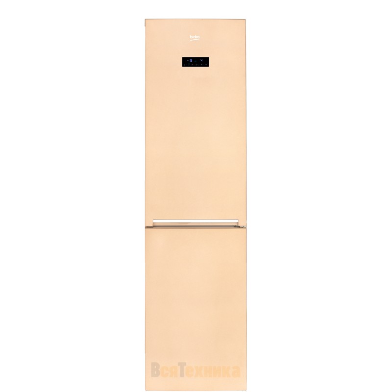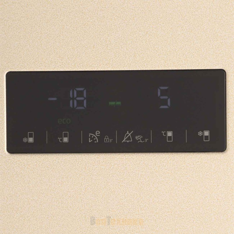 Бежевый двухкамерный холодильник с нижней морозильной камерой и удобным электронным управлением оснащен двухконтурной системой охлаждения NoFrost Dual Cooling (Ноу Фрост), которая разделяет воздушные потоки в холодильной и морозильной камерах, не допуская смешивания запахов и образования льда на стенках.