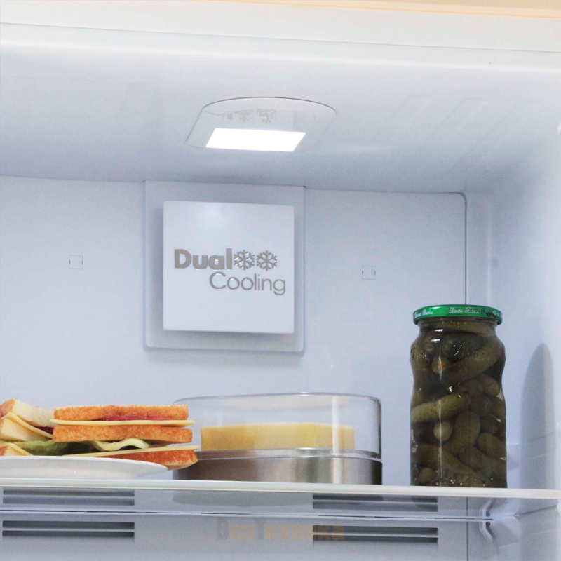 По обеим камерам постоянно циркулирует прохладный воздух, препятствуя появлению ледяной корки на внутренних стенках. Это значит, что ручная разморозка не требуется.