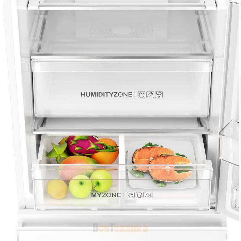 Зона свежести 0° Zone с регулируемой влажностью и температурой около 0°C предназначена для идеального сохранения мяса, рыбы, морепродуктов, сыров и молочной продукции.