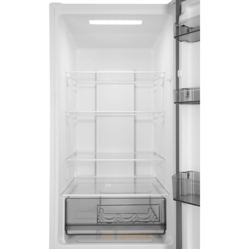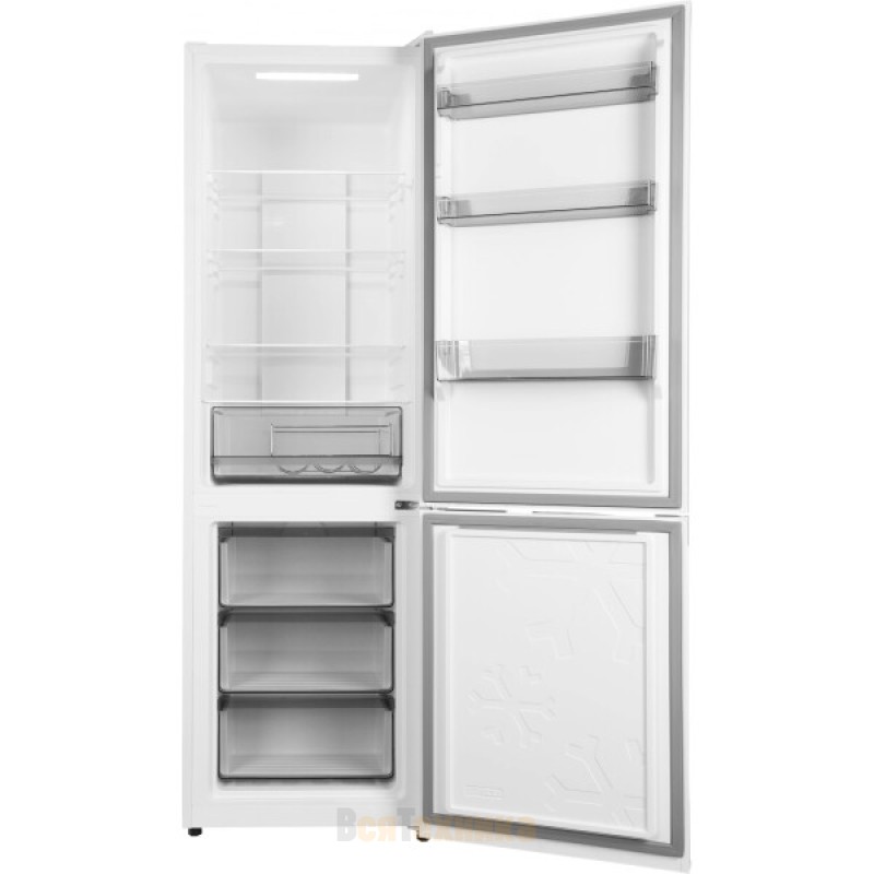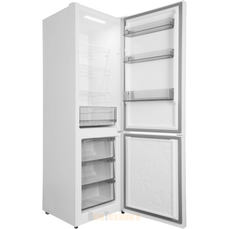 Холодильник Hyundai CC35083F с белым стеклянным фасадом создан для тех, кто ценит современный дизайн, функциональность и стабильную работу бытовой техники. Модель сочетает высокую вместимость, продуманную организацию внутреннего пространства и технологию No Frost, которая избавляет от необходимости регулярной разморозки. Такой холодильник станет надежным решением для семьи, обеспечивая удобное хранение продуктов и напитков в любых условиях. Общий объем устройства составляет 375 литров, из которых 240 литров приходится на холодильное отделение и 95 литров на морозильную камеру, расположенную в нижней части. Этого достаточно, чтобы разместить свежие продукты, готовые блюда, овощи, фрукты и напитки. В конструкции предусмотрено 4 полки из закаленного стекла, которые выдерживают значительный вес и легко очищаются при необходимости. Отдельный ящик помогает сохранить свежесть зелени и овощей, а боковые дверцы оснащены 3 полками для бутылок, соусов и других мелких продуктов. Технология No Frost в обеих камерах обеспечивает постоянную циркуляцию воздуха и равномерное охлаждение. Это предотвращает образование наледи на стенках и поддерживает оптимальный уровень влажности. Морозильное отделение оснащено тремя вместительными ящиками, а его мощность замораживания достигает 7 кг в сутки, что позволяет быстро подготовить продукты к длительному хранению. В случае отключения электричества продукты сохраняют свои качества до 10 часов благодаря хорошей теплоизоляции корпуса. Сенсорная панель управления расположена на внешней стороне дверцы и позволяет легко регулировать температуру в каждом отделении. Встроенный дисплей отображает текущие настройки, что делает использование интуитивно понятным. Уровень шума всего 40 дБ позволяет установить холодильник в кухне-студии или открытой зоне без риска дискомфорта. Энергоэффективный компрессор с хладагентом R600a снижает потребление энергии, соответствуя классу A+, и обеспечивает экономичную работу круглый год. Компактные размеры 59.5 х 195.3 х 63.5 см позволяют разместить холодильник в стандартной нише без сложной подгонки мебели.