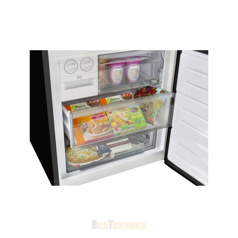 LED подсветка с боковым расположением внутри холодильного отделения. Ящик для овощей с контролем влажности