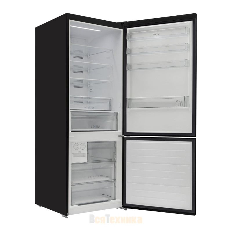 Холодильник Jacky’s JR FB192NF оснащен дисплеем расположенным на фасаде двери с помощью которого осуществляется управление температурами отделений, система охлаждение NoFrost MultiCooling включает в себя две независимые циркуляции воздуха с двумя отдельными вентиляторами и испарителями.