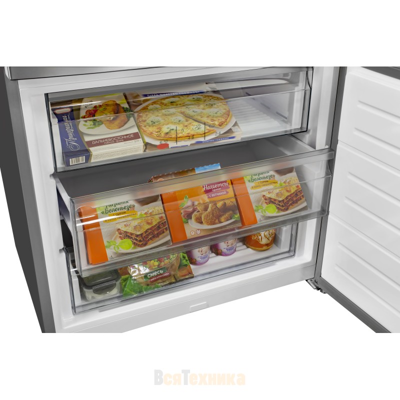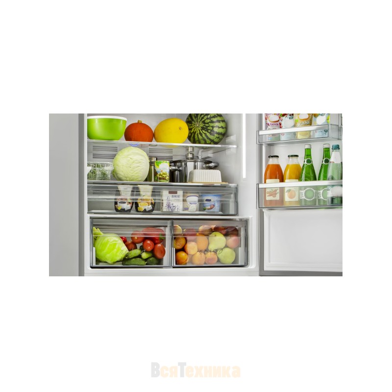 - Технология охлаждения камеры NoFrost MultiCooling предотвращает образование снежно-морозной шубы, которую в последствии сложно извлечь из холодильной и морозильной камеры.