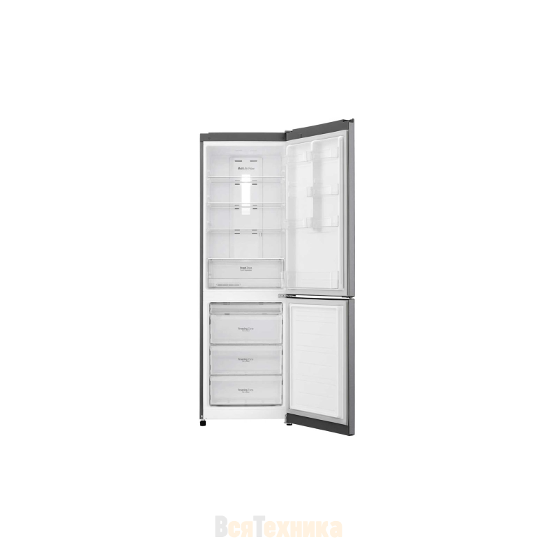 Холодильник LG GA-B419SLGL с нижней морозильной камерой оформлен в тёмном графите и создаёт ощущение аккуратного, сдержанного устройства, которое легко вписывается в современное пространство кухни. Его общий объём составляет 354 литра, и большая часть предназначена для холодильного отделения на 230 литров, из которых 223 литра приходятся на полезное пространство.