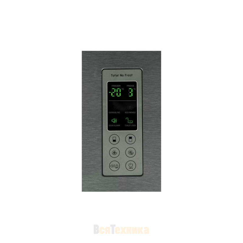 Управление вынесено на наружную панель с кнопочным LED-дисплеем, где можно настроить режимы и следить за температурой в обеих камерах. Инверторный компрессор делает работу устройства тихой, удерживая уровень шума на отметке 36 дБ, а энергопотребление составляет 277 кВтч в год, что соответствует классу A+.