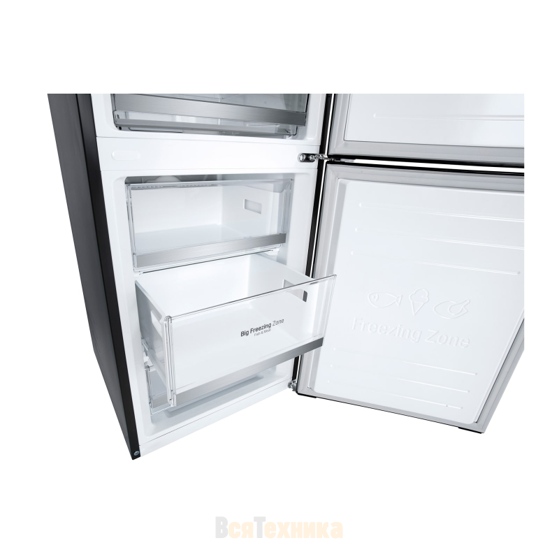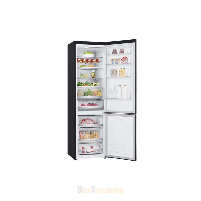 Этот холодильник LG GA-B509MBUM с морозильной камерой сразу производит впечатление продуманного и вместительного устройства, в котором каждая деталь направлена на удобное хранение продуктов. Его общий полезный объём составляет 384 литра, а большая часть пространства отведена под холодильное отделение на 277 литров, где четыре полки из стекла и регулируемые по высоте секции позволяют перестраивать внутреннее пространство под любые продукты.