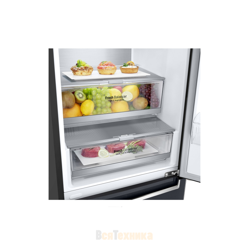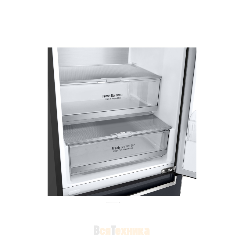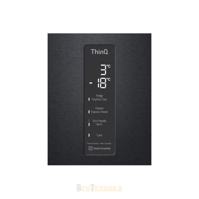 Система Multi Air Flow поддерживает равномерное распределение прохладного воздуха, а DoorCooling+ ускоряет восстановление температуры после каждого открытия дверцы. Работой всех процессов управляет электронная панель на дверце, где расположены сенсорные элементы и LED-дисплей с чёткой цифровой индикацией. Здесь же отображаются настройки режимов и температур, а звуковой сигнал напоминает о незакрытой двери. Устройство поддерживает подключение к Wi-Fi и работу через мобильное приложение LG ThinQ, позволяя менять параметры и получать уведомления прямо со смартфона.