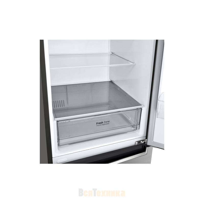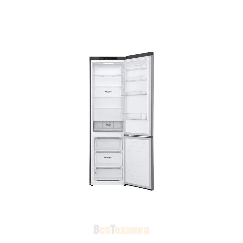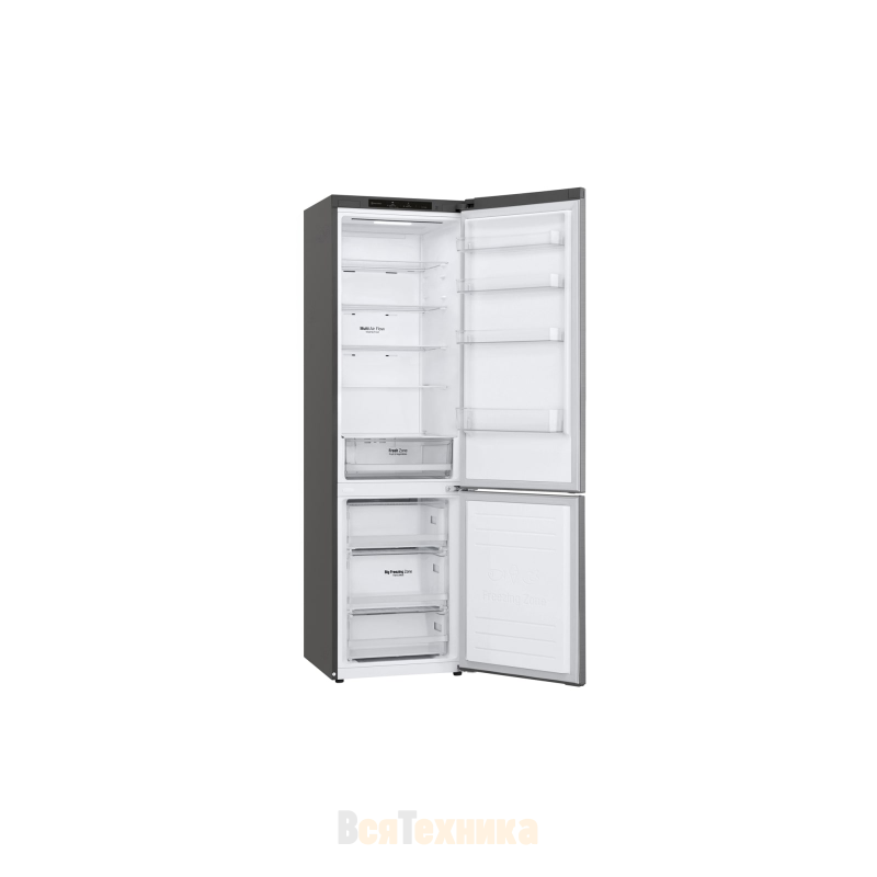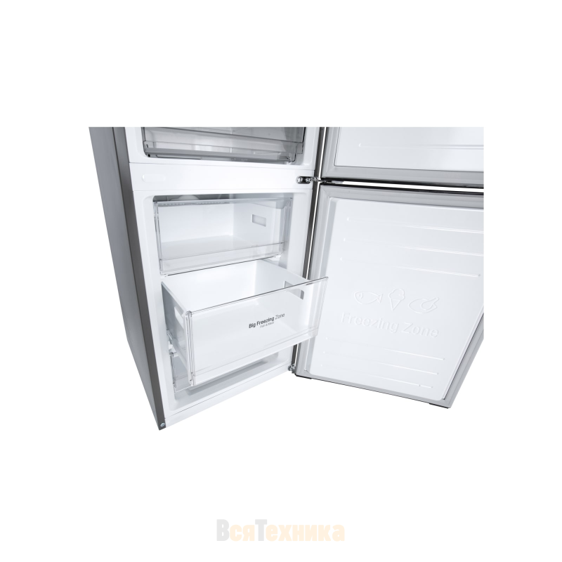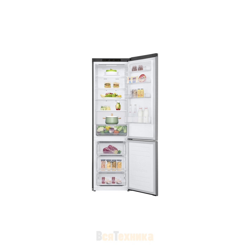Холодильник LG GA-B509MMZL в серебристом исполнении создаёт впечатление вместительного и продуманного прибора, в котором удобно организовано всё пространство для хранения. Его общий полезный объём достигает 384 литров, а широкая холодильная камера на 277 литров позволяет легко разместить продукты на неделю вперёд.
