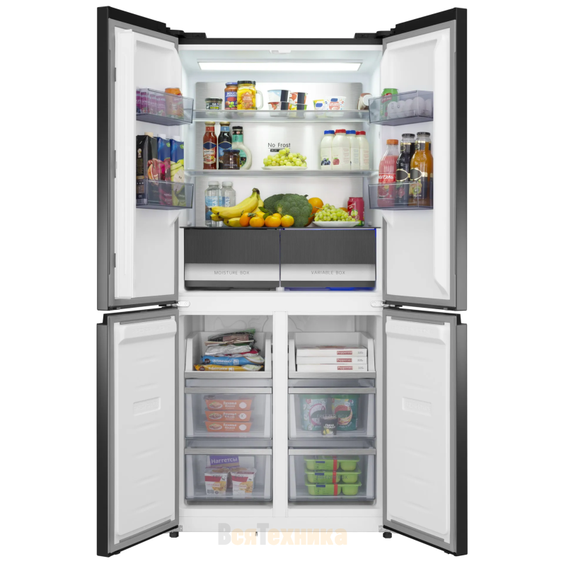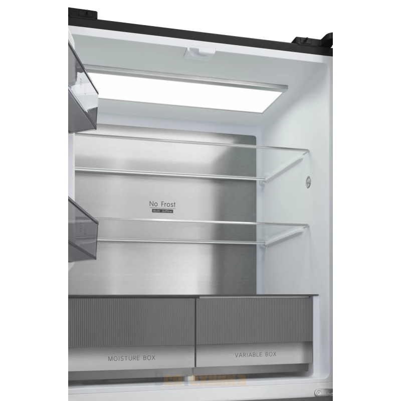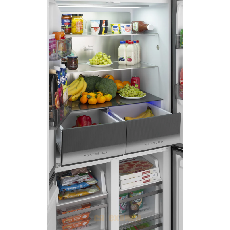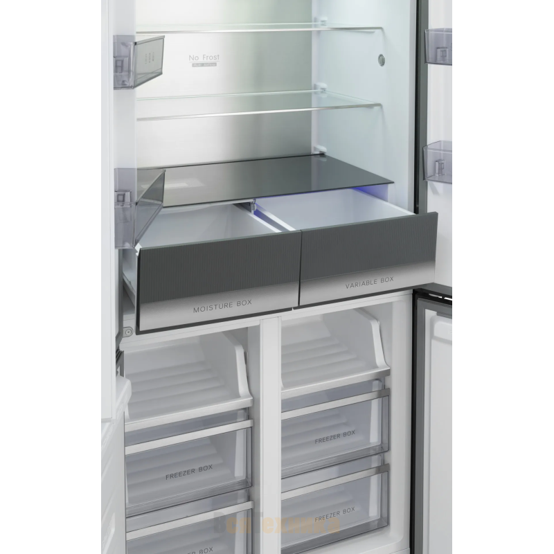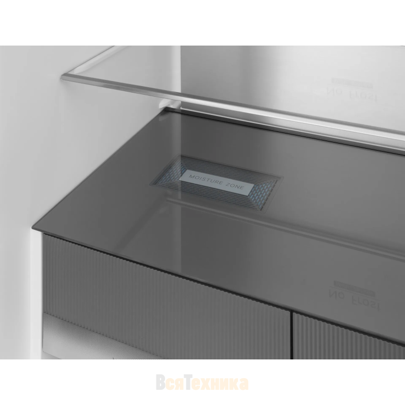 - Зона свежести —включает два ящика: MOISTURE BOX с влагоудерживающим модулем для предотвращения запахов и влаги, и VARIABLE BOX с регулируемой температурой от -3°C до +9°C для хранения различных продуктов.