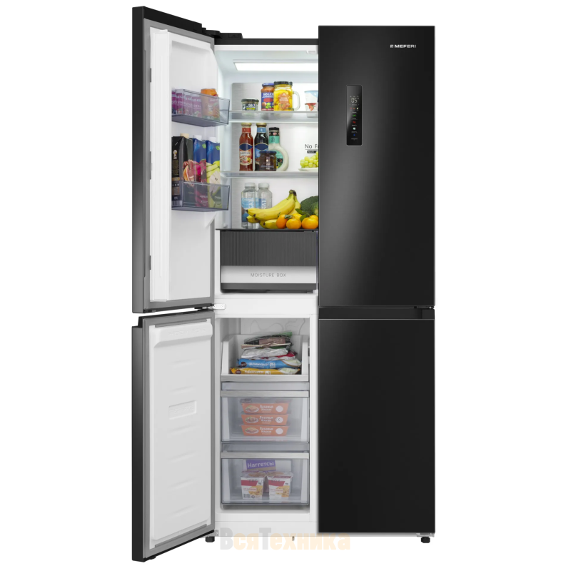 Отдельностоящий холодильник MEFERI MFR83BLACK IX TOTAL NO FROST CROSS DOOR COMFORT — стильный и практичный холодильник, который благодаря современным технологиям обеспечит комфортное хранение продуктов и экономию электроэнергии.