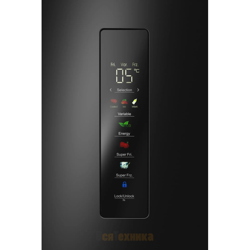 - Сенсорное управление с внешним цветным дисплеем позволяет удобно контролировать температурные режимы и включать функции суперохлаждения и суперзаморозки.