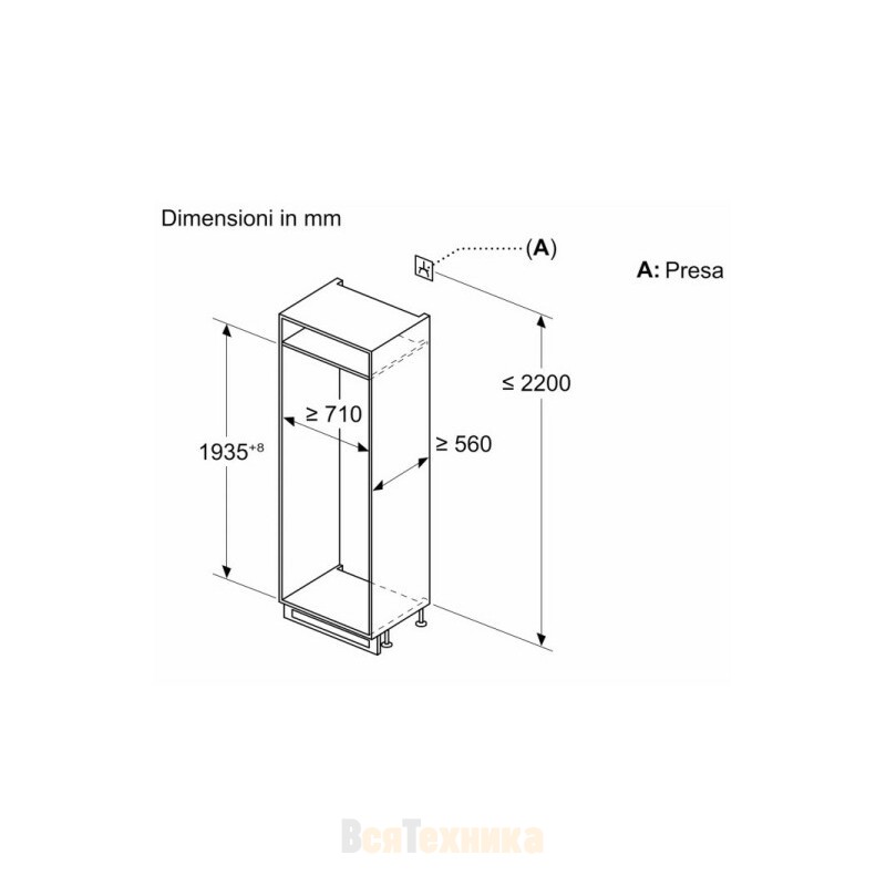 Вид | Встраиваемый холодильник |