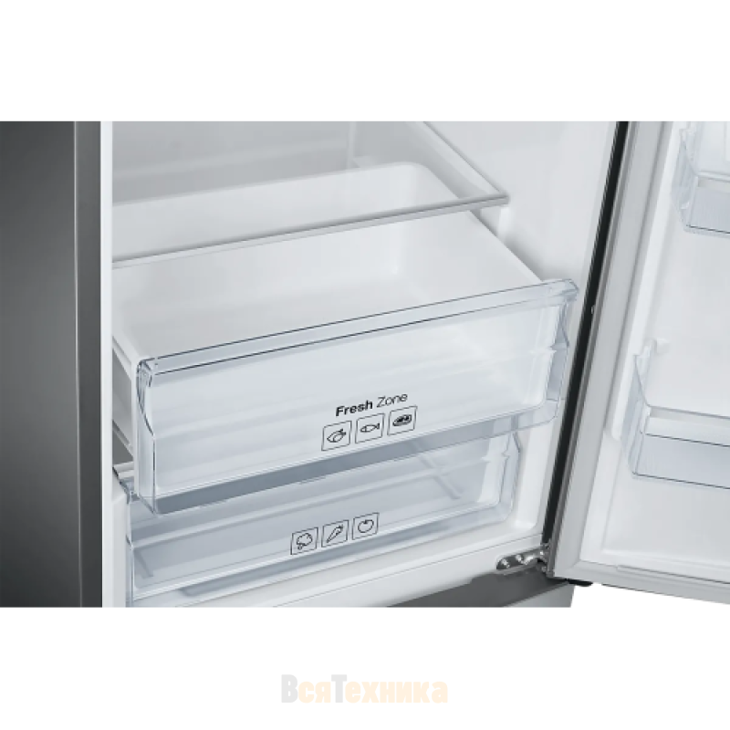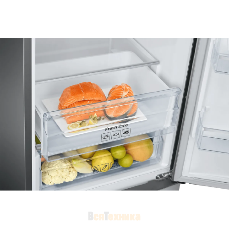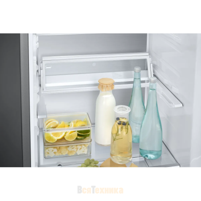 Samsung RB37A5271SA/WT холодильник с нижним расположением морозильной камеры предлагает сочетание вместительности, современного дизайна и продуманной организации внутреннего пространства. Его графитовый цвет придаёт корпусу выразительный и строгий внешний вид, а утопленные дверные ручки подчёркивают аккуратность линий. Высота модели составляет 2010 мм при ширине 595 мм, что делает конструкцию достаточно высокой и узкой, а глубина с учётом ручки — 647 мм — позволяет органично встроить холодильник в большинство кухонных пространств. Холодильник оснащён системой All Around Cooling, обеспечивающей равномерное распределение холодного воздуха, и работает с уровнем шума 37 дБ, благодаря чему остаётся практически незаметным в повседневной эксплуатации.