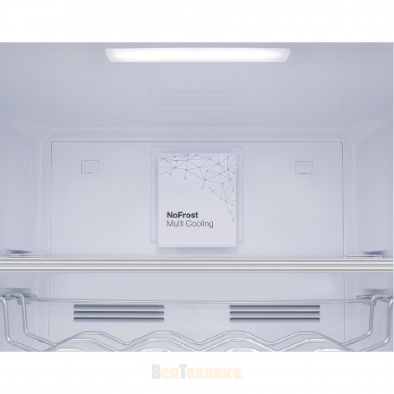 - Система No Frost Multi Cooling в холодильной камере и No Frost в морозильной обеспечивают равномерное охлаждение без наледи и инея.