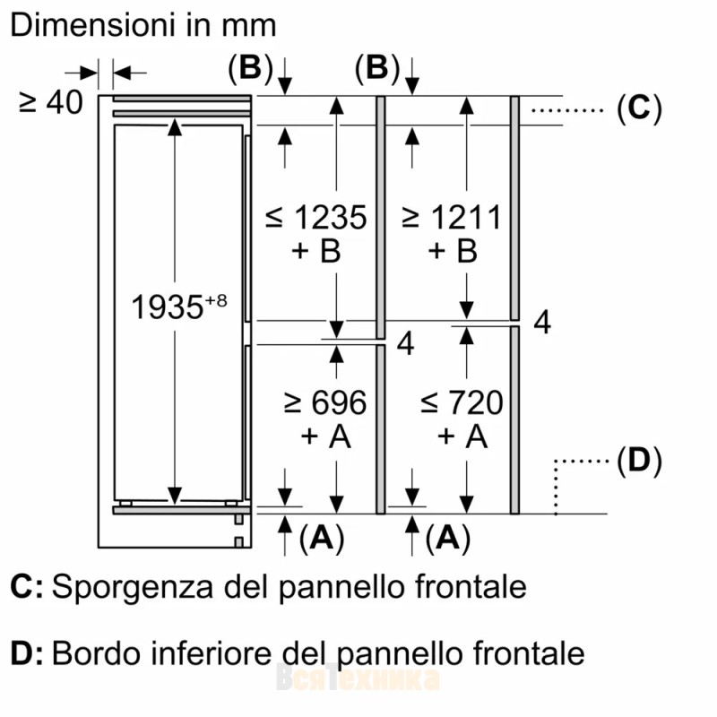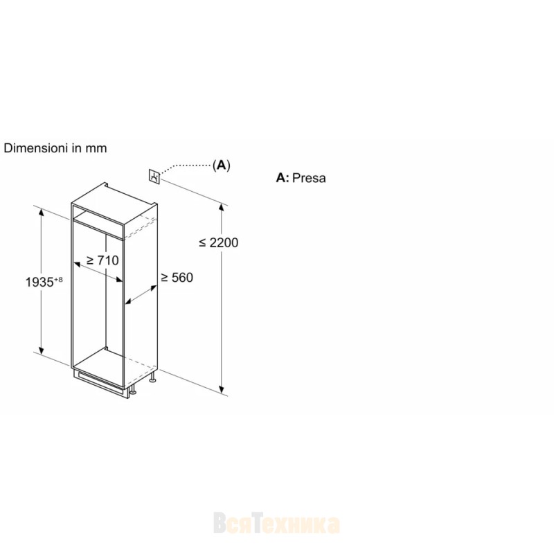 Габариты ниши для встраивания | Высота: 1940 мм, Ширина: 710 мм, Глубина: 560 мм |