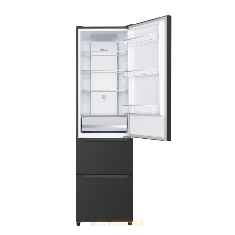 Выполненный в элегантном цвете чёрная сталь (Black Inox), он органично впишется в любой кухонный интерьер. Модель оснащена тремя камерами, включая зону свежести с регулировкой влажности (Humidity Control), что позволяет хранить продукты дольше без потери качества.