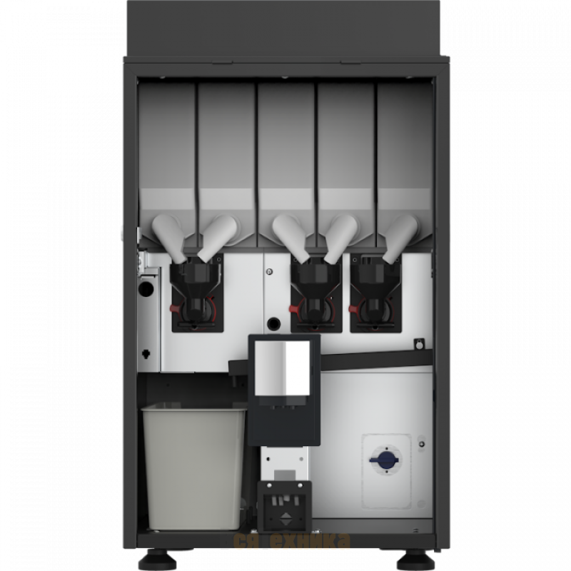 - Автономность и вместительность - 5 бункеров по 2,8 кг каждый для сыпучих ингредиентов (сухие сливки, шоколад, раф-микс, составы для милкшейков) обеспечивают более 200 порций без дозаправки.
