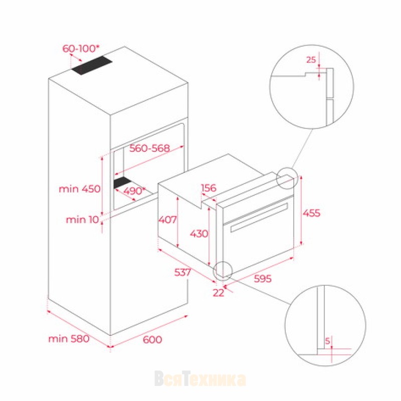 - Увеличенный зазор между камерой и мебельным корпусом для лучшей термоизоляции