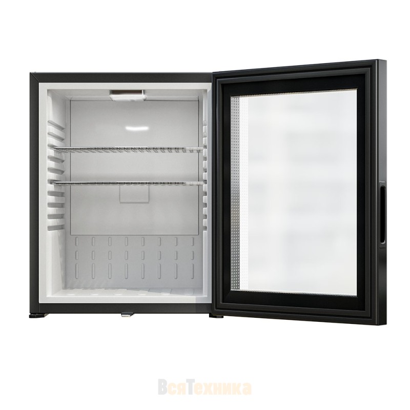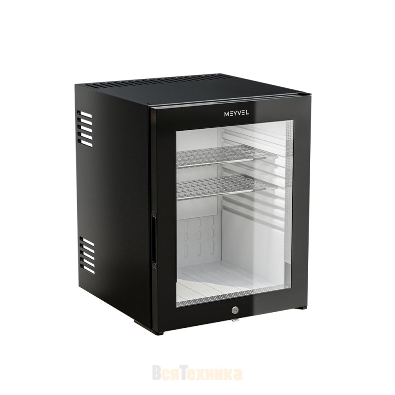 Дверца Meyvel MMT-38BG реверсивная, поэтому устройство адаптируется к конкретным условиям установки, и стеклянная, чтобы видеть содержимое без необходимости открывать мини-бар. Это удобно для гостей отеля или сотрудников офиса.