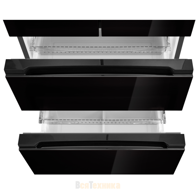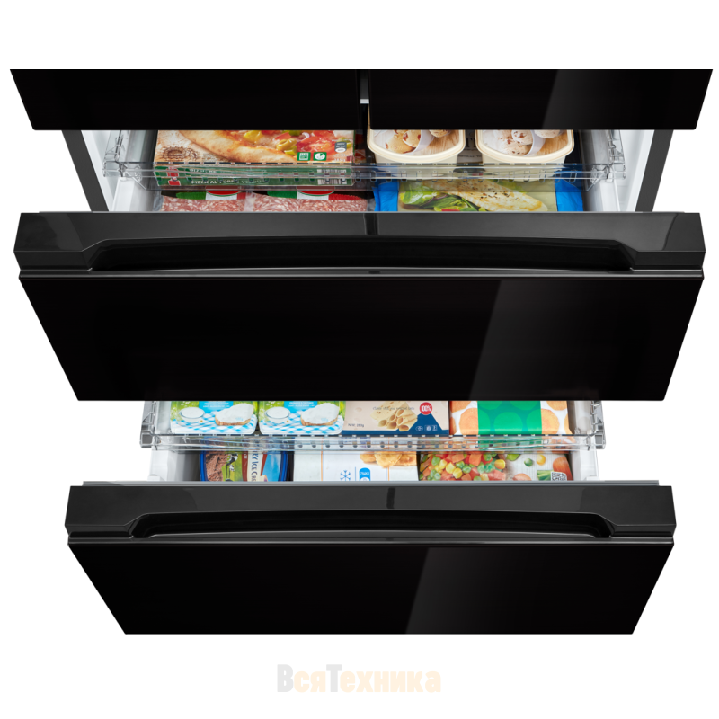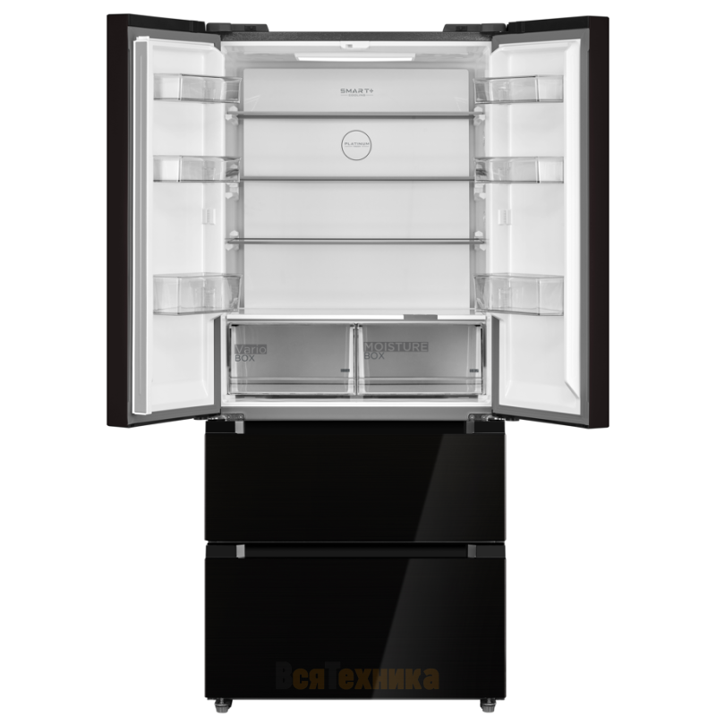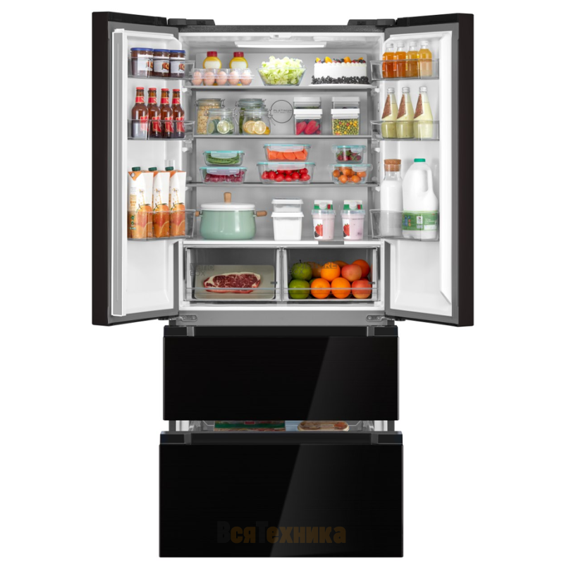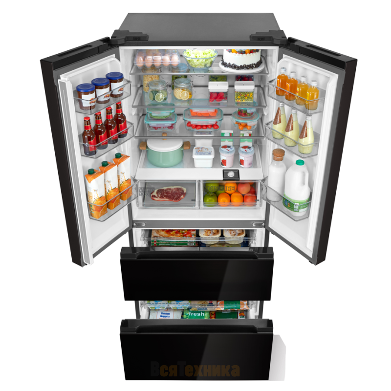 Общий объем модели составляет 634 л. Внутренние стенки снабжены антибактериальным покрытием. Холодильник размораживается автоматически с помощью системы No Frost. В приборе реализована функция очистки воздуха, равномерное распределение воздуха обеспечивает встроенный вентилятор.