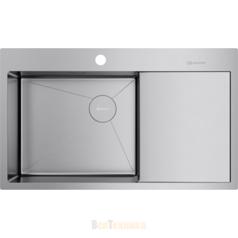 Отличительной особенностью этой модели является выпуск, размещенный сбоку от мойки. Такой дизайн позволит освободить место под мойкой для эргономичного размещения системы хранения, фильтра, измельчителя и других элементов.