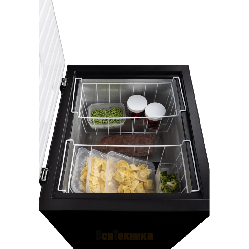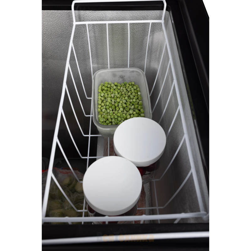 Этот ларь — универсальное решение 3 в 1: он может работать как морозильная камера, также как холодильник и в режиме «Суперзаморозка» (обеспечивает температуру до –24 °C и ниже для сохранения максимума полезных веществ, витаминов, натурального вкуса и структуры продуктов). Широкий диапазон температур работы устройства поддерживает режим от –12 до –24 °C для заморозки или до +5 °C для охлаждения свежих продуктов.