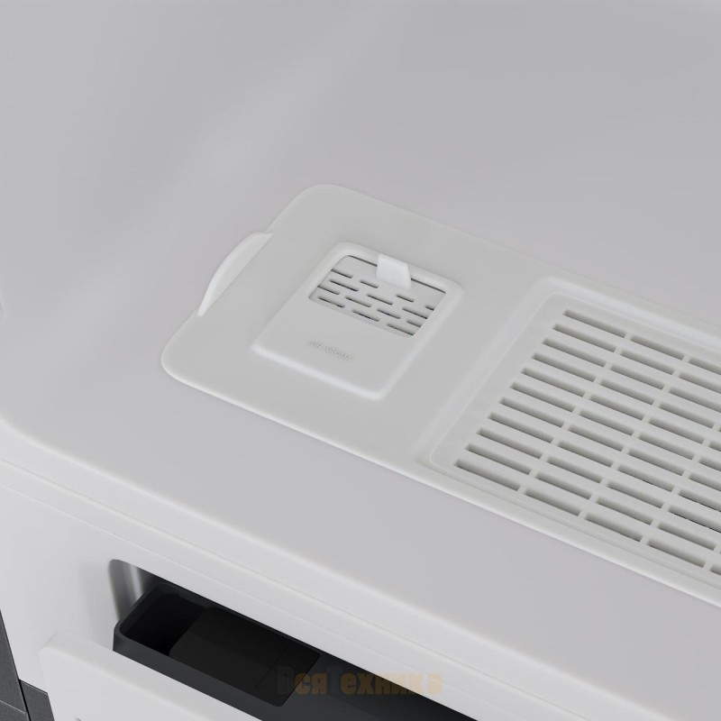 Мотор мощностью 1650 Вт работает с уровнем шума до 56 дБ. Доступно использование аромакапсул. Ворсовый фильтр продлевает эксплуатацию парового шкафа.