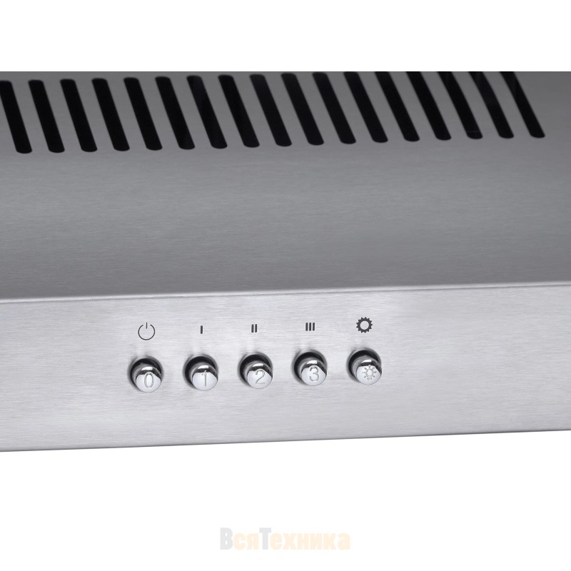 Модель оснащена двумя алюминиевыми жировыми фильтрами, которые легко снимаются и очищаются, а также двумя угольными фильтрами для дополнительной очистки воздуха. Наличие обратного клапана предотвращает возврат отработанного воздуха обратно в кухню, обеспечивая её свежесть и чистоту.