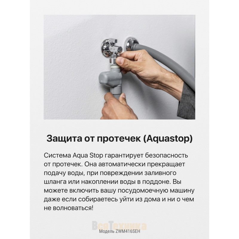 Технология 3D-мойки - это 3 независимых уровня подачи воды для тщательного очищения посуды и столовых приборов. Система Aquastop предотвращает протечки, сопровождающие повреждение шланга или избыток воды в поддоне.