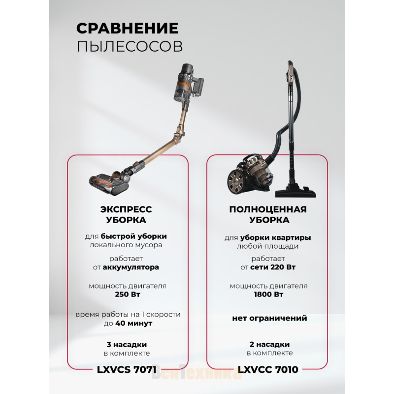 Беспроводной вертикальный пылесос LXVCS 7071 – ваш надежный помощник в борьбе за порядок. Он идеален для поддержания чистоты в квартире и в автомобиле.