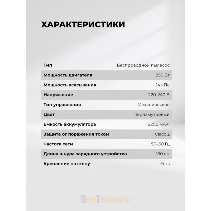 Тип | Вертикальный ручной пылесос для сухой уборки |