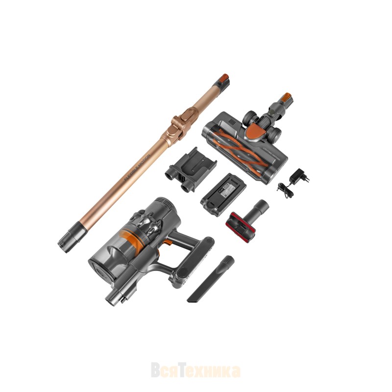 Комплектация | Насадка для мебели, Штанга FLEXIBLE, Щелевая насадка, Щетка HARD BRUSH |