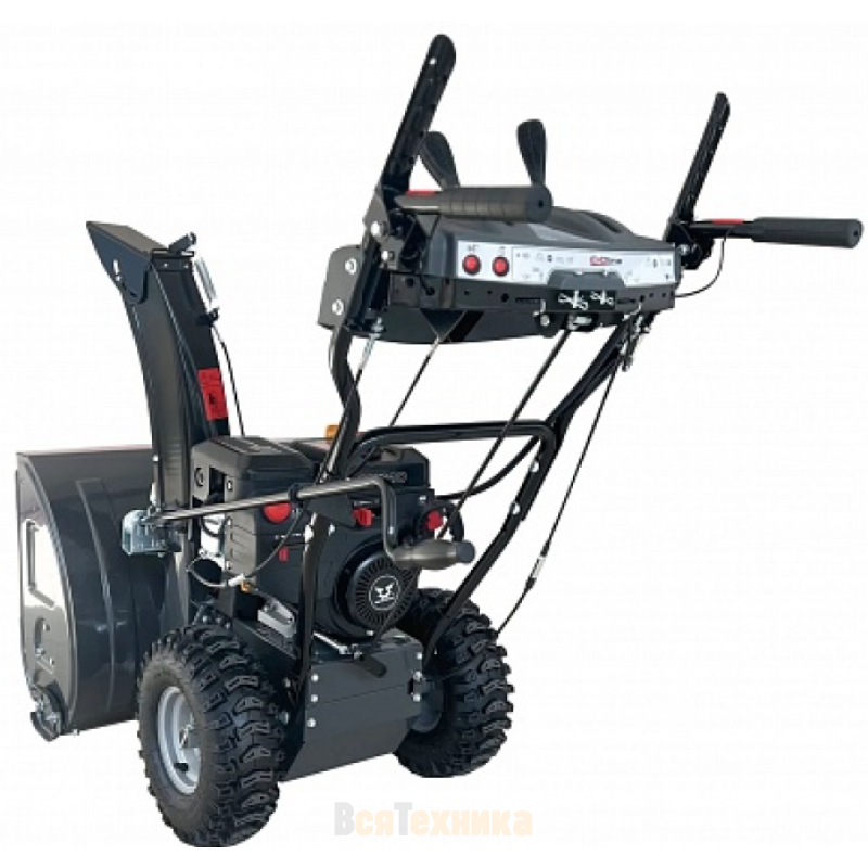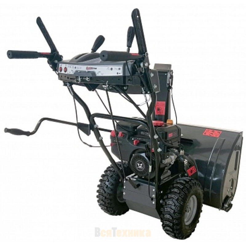 Имеющиеся колеса обеспечивают удобное передвижение снегоуборщика. Трансмиссия осуществляется с помощью фрикционного диска, а количество скоростей вперед и назад составляет 6 и 2 соответственно. Снегоуборщик также обладает рядом удобных функций. Например, рукоятки с подогревом позволяют комфортно работать даже в холодную погоду. Также встроена фара для обеспечения хорошей видимости в темное время суток.
