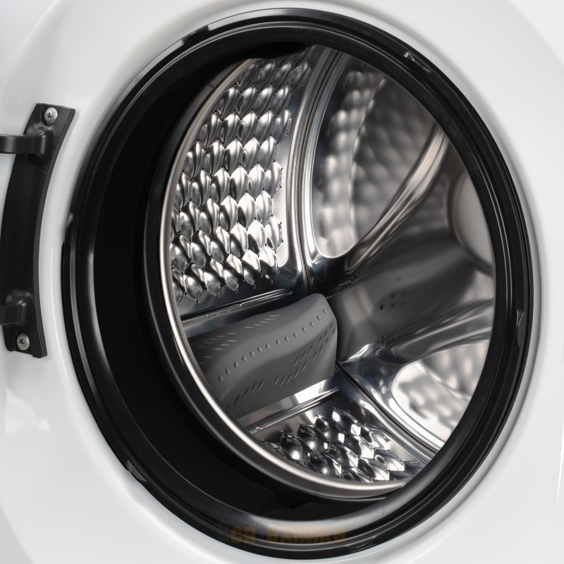Машина оснащена современным инверторным мотором с прямым приводом, который обеспечивает стабильную и тихую работу, снижая вибрацию и увеличивая срок службы устройства. Максимальная скорость отжима достигает 1200 оборотов в минуту, а класс отжима соответствует категории B, что гарантирует хорошее удаление влаги из белья. Класс стирки — A, а класс энергоэффективности — A+++, что делает модель экономичной и экологичной. За один цикл расход воды составляет 55 литров.