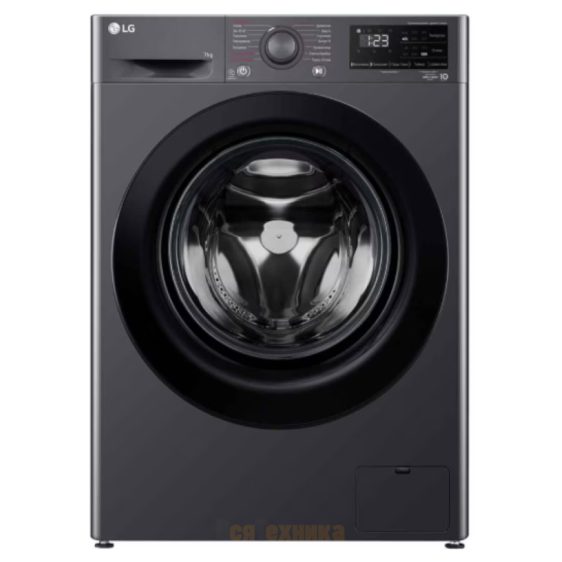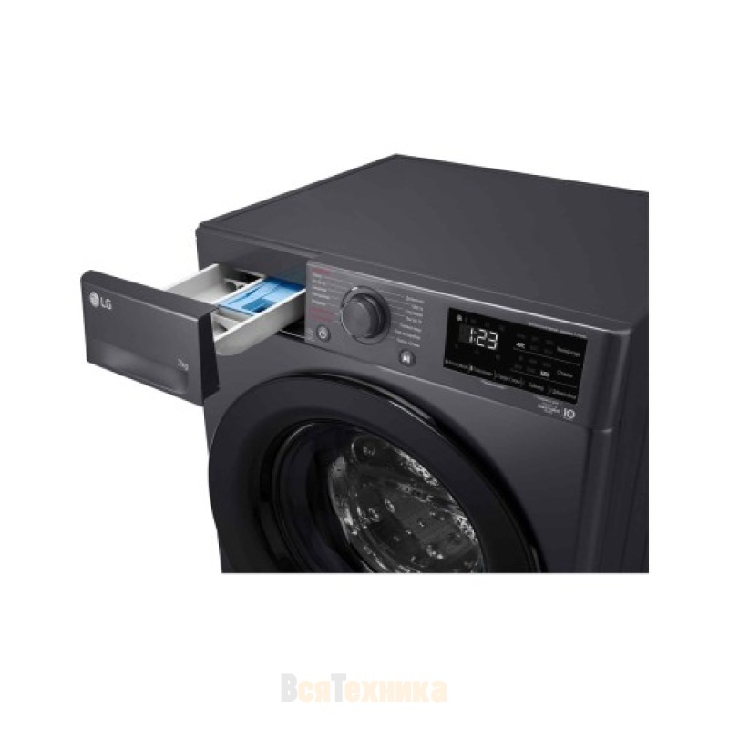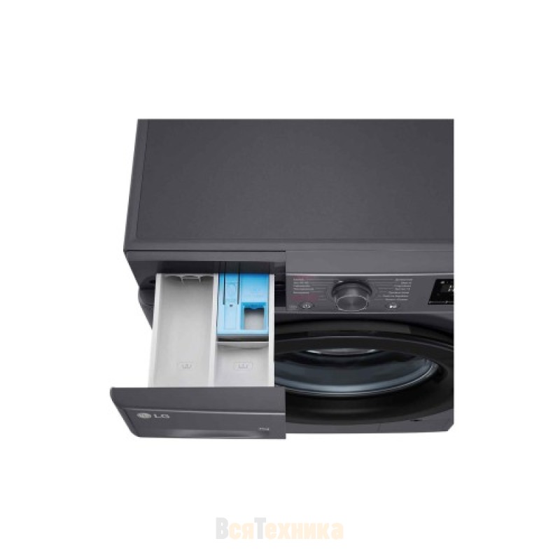 Для контроля и настройки предусмотрен LED-дисплей со всеми необходимыми индикаторами, включая отображение времени до завершения, выбранных параметров и активных функций. Таймер отсрочки запуска до 19 часов помогает подстроить процесс под любой график. Поддержка Wi-Fi расширяет возможности: управление через приложение LG ThinQ делает машину частью умного дома, а мобильная диагностика Smart Diagnosis облегчает обслуживание.