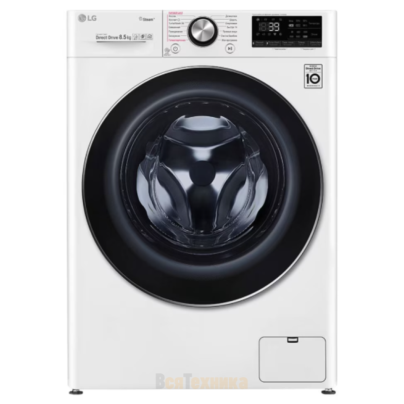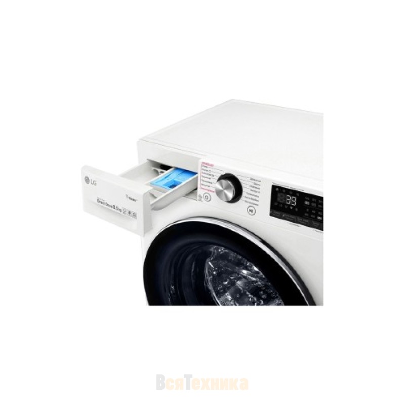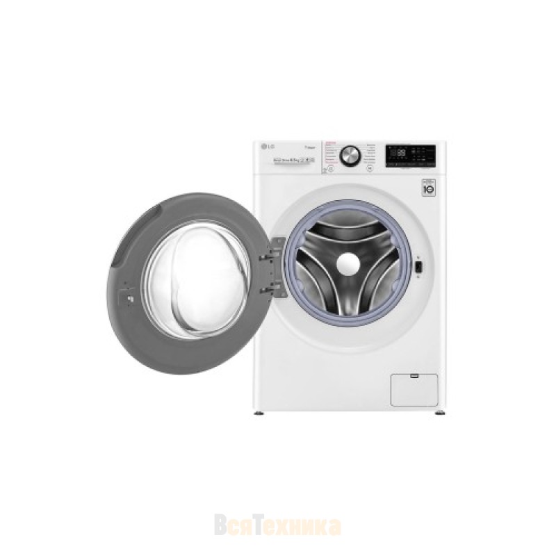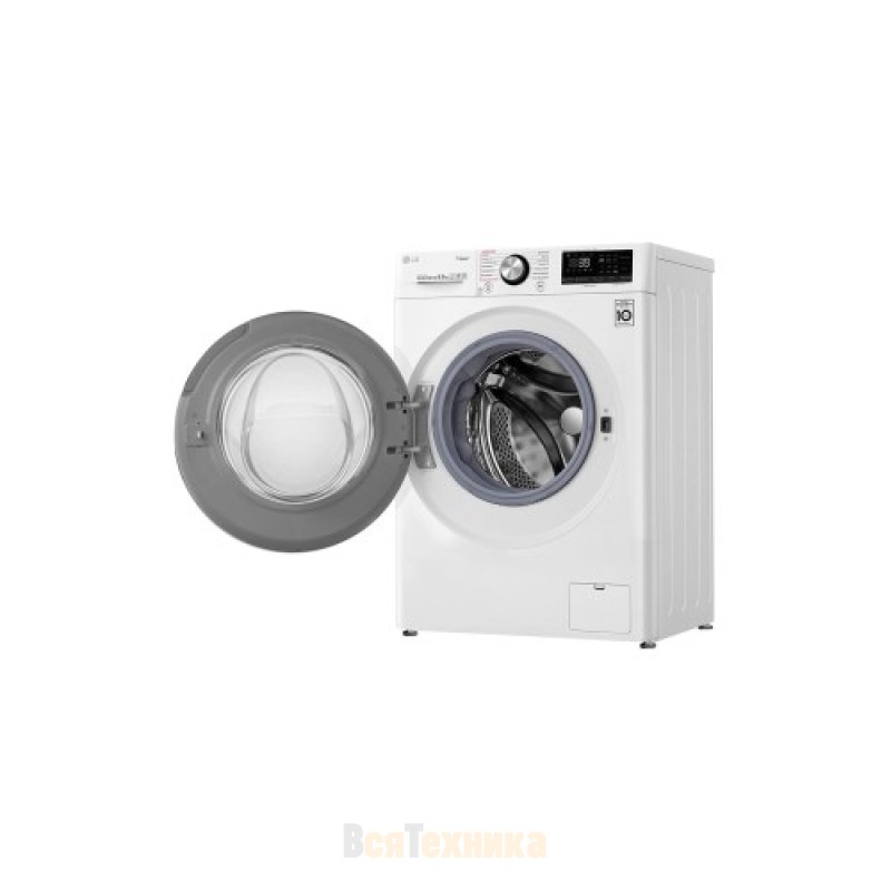 Сенсорная панель с вертикальным расположением и LED-индикацией делает управление понятным и наглядным. Отображение температуры, скорости отжима, оставшегося времени и выбранных опций упрощает контроль процесса, а таймер отсрочки старта до 19 часов помогает планировать загрузки заранее. Машина поддерживает Wi-Fi и работает в экосистеме LG ThinQ, что даёт возможность управлять стиркой дистанционно, получать уведомления и расширять функциональность через приложение. Мобильная диагностика Smart Diagnosis облегчает обслуживание, быстро определяя возможные неполадки.