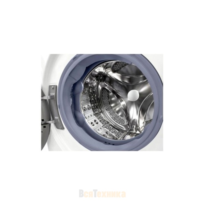 Инверторный мотор с прямым приводом снижает вибрацию и шум, удерживая уровень громкости во время стирки на отметке 52 дБ, а при отжиме — 70 дБ. Люк диаметром 30 см открывается на угол 150°, облегчая доступ к белью, а автоматическое взвешивание помогает системе точнее подбирать режимы.
