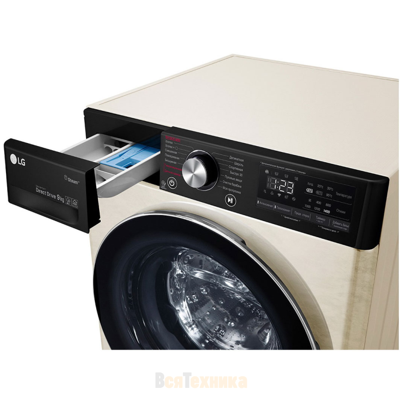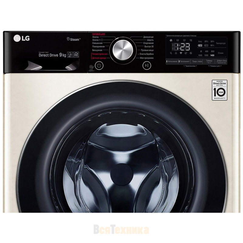Модель оснащена сенсорным LED-дисплеем и может управляться через смартфон с помощью LG ThinQ и встроенного Wi-Fi. Это позволяет запускать стирку дистанционно, создавать собственные циклы, получать уведомления и проводить диагностику. Полный набор программ включает хлопок, деликатные и спортивные ткани, пуховое одеяло, детские вещи и быстрый цикл 30 минут. Дополнительные функции, такие как интенсивная стирка, предварительная обработка, добавление белья во время работы и автоочистка барабана, делают эксплуатацию особенно удобной.