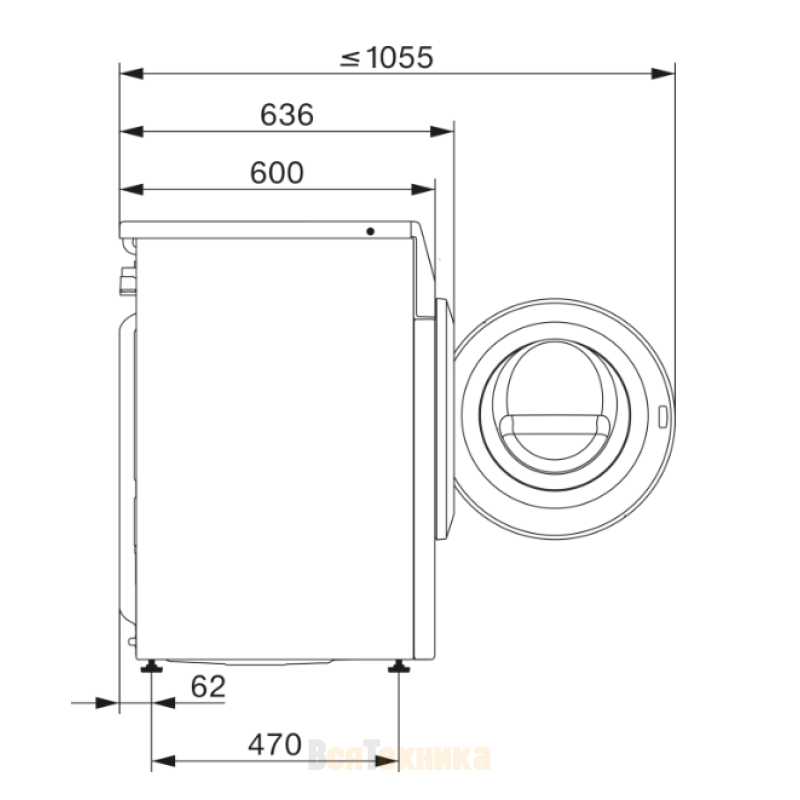 Глубина прибора с открытой дверью, см | 105.4 |